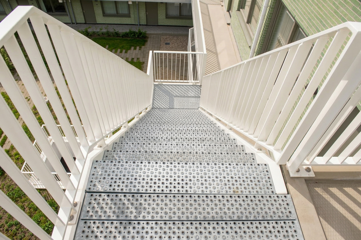 Voor een woningbouwproject zijn galerijen uitgevoerd met roosters gevuld met granulaatkorrels. Enkele voordelen ten opzichte van beton zijn: eenvoudige montage, waterdoorlatend en geluidsdempend. Het granulaat is verkrijgbaar in diverse kleuren.